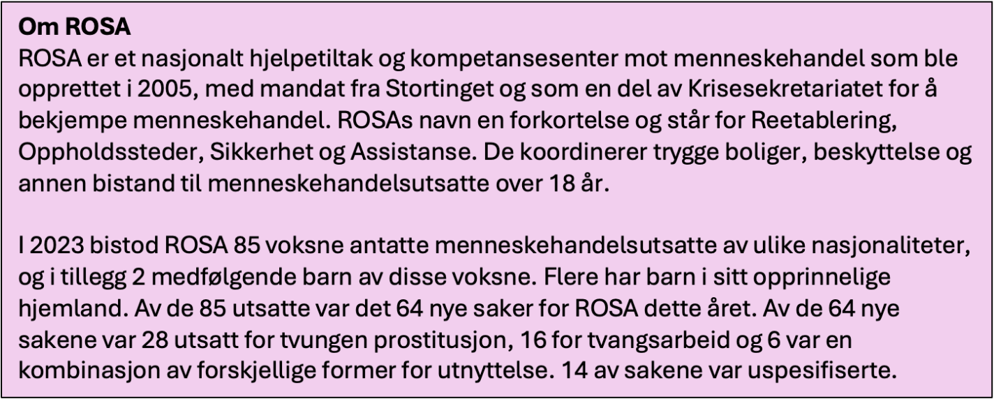 ROSA. (2024) Årsrapport 2023. ROSA.https://www.rosanorge.no/wp-content/uploads/2024/06/ROSA-Arsrapport-2023-web-1.pdf